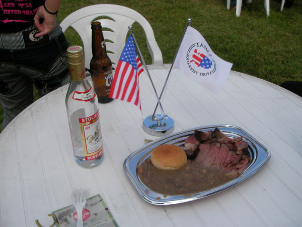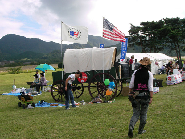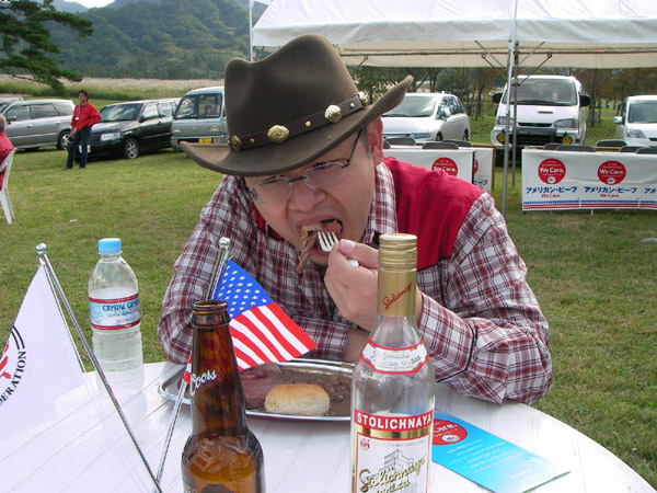 匂いに誘われてフラフラ… イベント名物のステーキです。 ウェスタン〜な設備が雰囲気良いですね☆ お肉は目の前で切ってくれます。 |