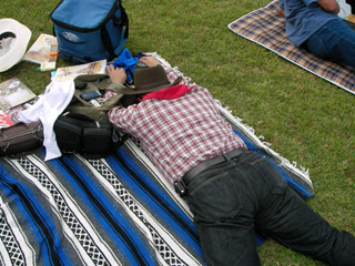 …はしゃぎ過ぎて燃料切れの二人。 トオル君はサングラスを直す気力も無い?ようです。 まだ一日は長いのに… |