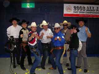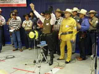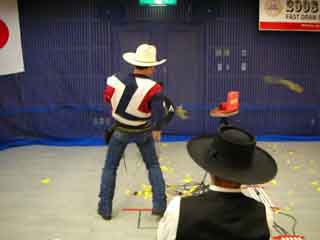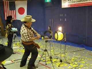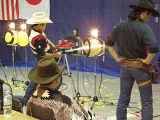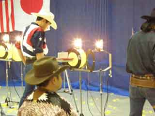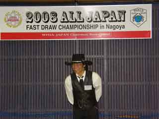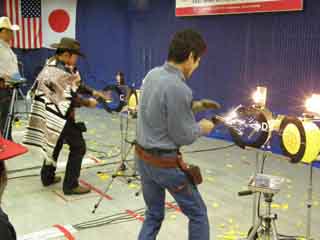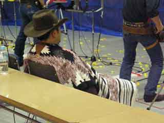 Joeさん、カントリーゴールドの時に買って来たポンチョを着ての登場! 実はファストドロウ同期だというSheenさんとの対決? |