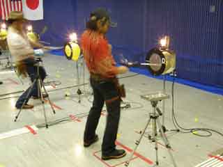 大会中の3競技の中でもクリアする事が難しいとされるダブルブランクス。 “今度こそ割ってやる!”と言わんばかりに残った風船をじっと見つめるTeffさん。 男は背中で語るもんです! |