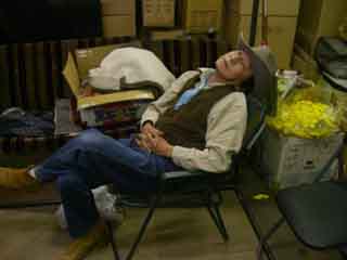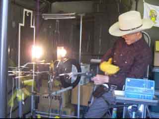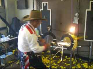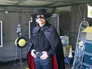 色物勝負なら負けてなるものか!? と、Zorroに勝負を挑んだJoe…改め、Outlaw(アウトロー)さん。 なぜか逮捕されちゃった後…と言う事で、両手に手錠をはめたままの参加。 「吊るし終えるまでは油断は禁物だぜ、保安官」と言う感じ? |