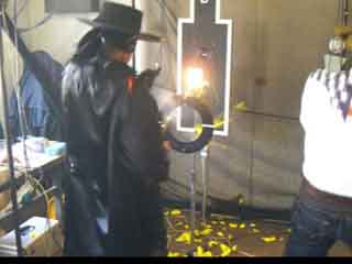Zorroさん、初参加とは思えない見事なシュート!? 使い慣れた剣を銃に持ち替え、民衆のために立ち上がります! …で、急につまづいちゃいました(?) |