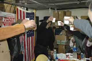 Lee Vanさんのようやくの登場??で、またカンパーイ!! 熱田の夜はいつまでも熱く燃え続けるのでした…。 |