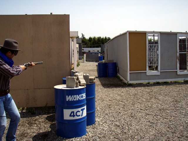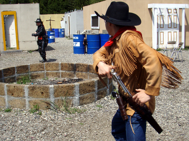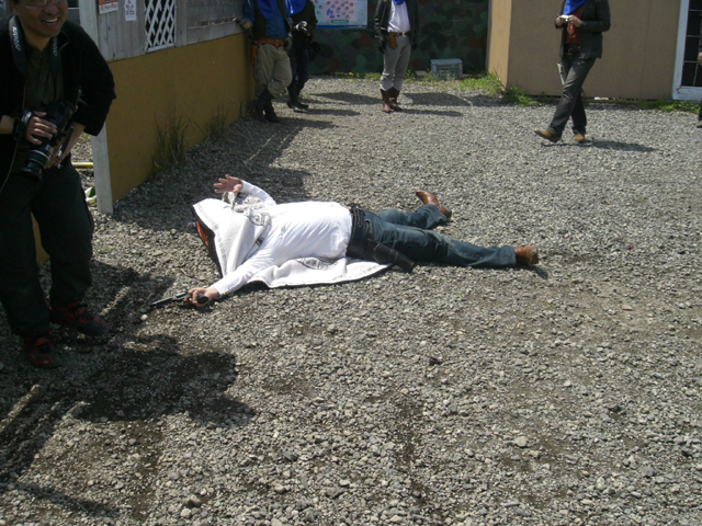 今度はマトモ(?)な早撃ち対決。 我らがJoeさん、拍車を鳴らしながら貫禄を漂わせて登場です! …結果? キニシナーイ |