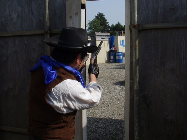 本日、一番弾を食らったで賞なkamikazeさん。 ボケに対して、突っ込みは容赦の無い銃弾の嵐。 このノリがウェスタンサバゲの良さなのでしょうね☆ |